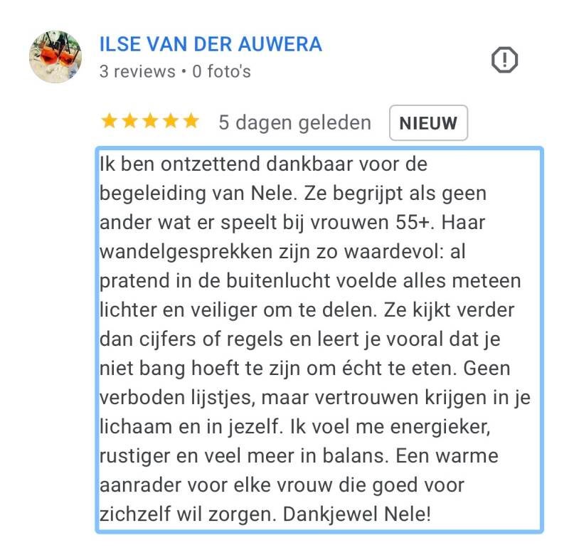 "Voor zij die twijfelen om met Nele haar gezondheidsadvies te starten, heb ik 1 antwoord: